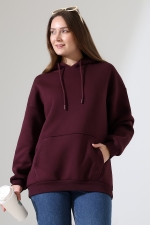 21615 KADIN 3 İP PENYE KOMPAKT ŞARDONLU SALAŞ OVERSİZE KAPŞONLU KANGURU CEPLİ SWEATSHIRT