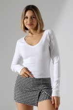 21948 KADIN UZUN KOL GENİŞ V YAKA FULL LYC RİBANA TSHIRT