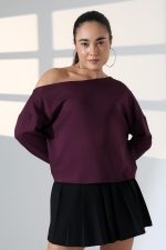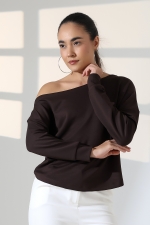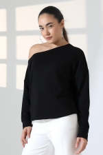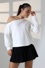 22185 KADIN KAYIK YAKA OMUZ DÜŞÜMLÜ DOUBLE FACE YUMUŞAK DOKULU UZUN KOL SWEAT-BLUZ