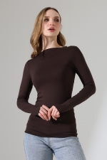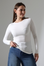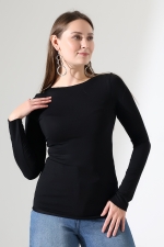 22199 KADIN OVERLOK KAYIK YAKA UZUN KOL UÇLARI VE ETEĞİ OVERLOKLU FULL LYC VİSKON BLUZ