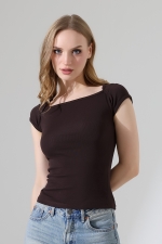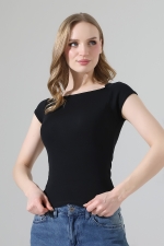 22101 KADIN KISA KOLUCU BİYELİ FULL LYC RİB KOMPAKT PENYE BİYELİ BİNDİRMELİ KARE YAKA T-SHIRT