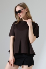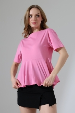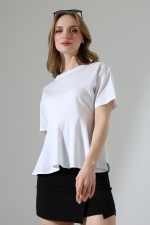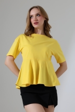 22173 KADIN BİSİKLET YAKA KISA KOL ÖN VE ARKA BEDEN PARÇALI ALTI VOLANLI PAMUKLU BLUZ