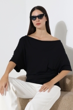 22273 KADIN KAYIK YAKA VORTFULL LYCVSK KISA KOL YARASA KESİM KISAKOL YANLARI BÜZGÜLÜ TSHIRT