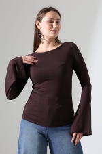 22157 KADIN KAYIK YAKA UZUN KOL UÇLARI İSPANYOL KOL FULL LYC VİSKON YANLARI BÜZGÜLÜ BLUZ