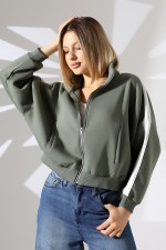 21954 KADIN 3 İP PENYE COMP. ŞARD.KOLLARI MİKROŞERİTLİ BOYDAN METAL FERMUARLI HAKİM YAKA FLOTA CEPLİ GENİŞ SALAŞ SWEATSHIRT