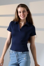 22023 KADIN FULL LYC RİBANA GÖMLEK YAKA PATLI KISA KOL TSHIRT