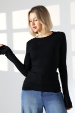 22147 KADIN TULUM BİSİKLET YAKA UZUNKOL AĞZI İSPANYOL KOL FULL LYC VORTVİSK RİBANA UZUN KOL TSHIRT