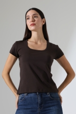 21804 KADIN KISA KOL FULL LYC RİB KOMPAKT PENYE TULUM KARE YAKA T-SHIRT
