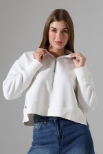 21967 KADIN 3 İP DİKYAKA KAMYON YARIM FERMUAR ETEK KAŞGORSESİ YIRTMAÇLI GENİŞ SWEATSHIRT