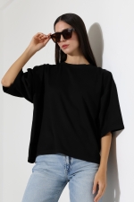 22286 KADIN YARIM KOL OVERSİZE YANLARI YIRTMAÇLI BİSİKLET YAKA DOUBLEFACE YUMUŞAK DOKU TSHIRT
