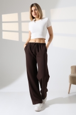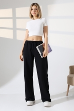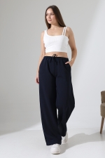 22182 KADIN DİAGONEL ŞARDONSUZ 3 İP PENYE KOMPAKT İNCE KEMERLASTİKLİ PALAZZO PAÇASI AÇIK EŞOFMAN PANTOLON