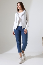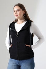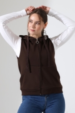 22172 KADIN DİAGONEL 3 İPLİK ŞARDONSUZ KOLSUZ KANGURU CEPLİ KAPŞONLU BOYDAN FERMUARLI HIRKA