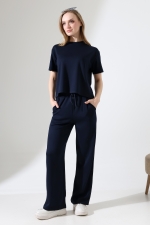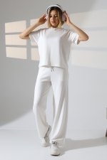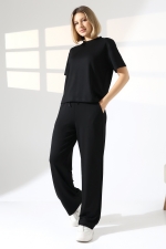 22056 KADIN DOUBLEFACE YUMUŞAK DOKULU KUMAŞ KISAKOL TSHIRT VE ALTI CEPLİ PAÇA AÇIK SALAŞ PANTOLON ALT ÜST TAKIM