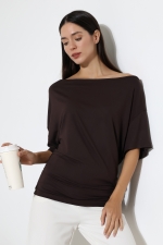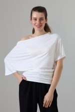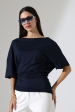 22273 KADIN KAYIK YAKA VORTFULL LYCVSK KISA KOL YARASA KESİM KISAKOL YANLARI BÜZGÜLÜ TSHIRT