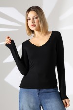 22132 KADIN TULUM V YAKA FULL LYC VORTVİSK UZUN KOL BLUZ