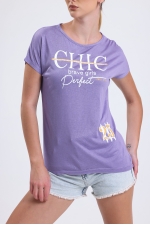 19609 CHİC BASK.BAYAN KISA KOLU BEDENDE SALAŞ VSK TSHIRT
