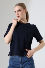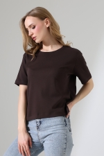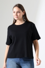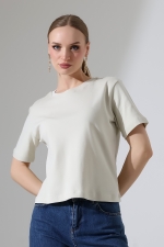 22177 KADIN İNTERLOK PENYE COMP PAMUKLU KISA KOL BİSİKLET YAKA TSHIRT