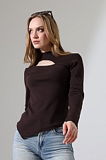 22190 KADIN YARIM BALIKÇI UZUN KOL YAN ETEĞİ ASİMETRİK ÖN GÖĞSÜ OVAL PENCERELİ TSHIRT